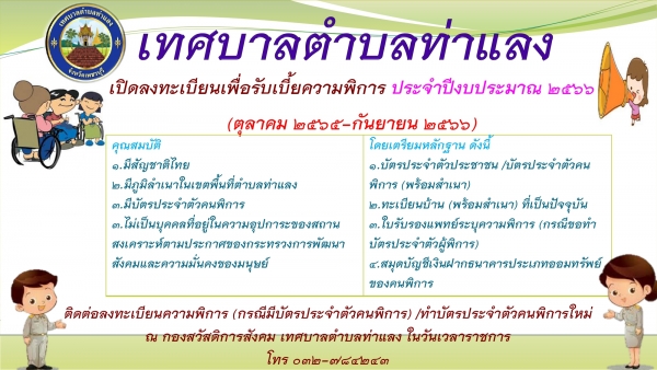เชิญชวนลงทะเบียนผู้พิการ (รายใหม่) เพื่อรับเบี้ยความพิการ ประจำปีงบประมาณ 2566