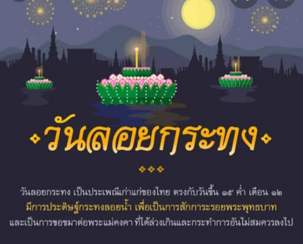 เชิญชวนประชาชนเที่ยวงานวันลอยกระทงเพื่อสืบสานวัฒนธรรมประเพณีไทย