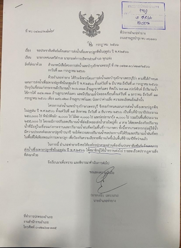 ข่าวประชาสัมพันธ์แจ้งแผนการส่งน้ำเพื่อเพาะปลูกพืชในฤดูฝน ปี พ.ศ.2566