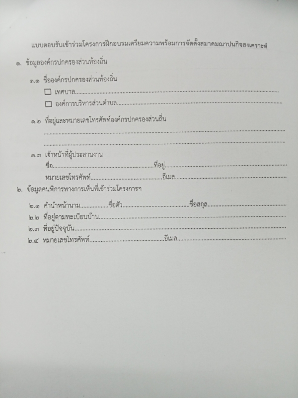 โครงการฝึกอบรมเตรียมความพร้อมการจัดตั้งสมาคมฌาปนกิจสงเคราะห์คนตาบอดระดับจังหวัด