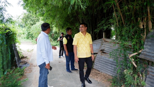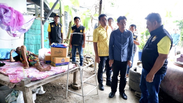 ในการลงพื้นที่มอบถุงยังชีพ จากสภากาชาดไทย (เครื่องอุปโภค-บริโภค) /น้ำดื่มให้กับนายบำรุง เครื่องทิพย์ และสอบถามความคืบหน้าการซ่อมแซมบ้านให้ผู้ยากไร้