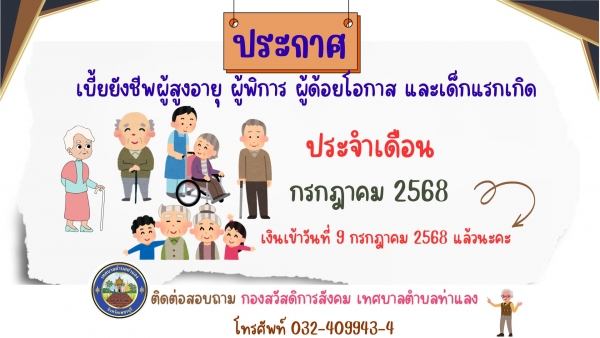 เบี้ยยังชีพผู้สูงอายุ ผู้พิการ ผู้ด้อยโอกาส และเด็กแรกเกิด ประจำเดือนกรกฎาคม 2568 (เงินเข้าวันที่ 9 กรกฎาคม 2568) เรียบร้อยแล้ว