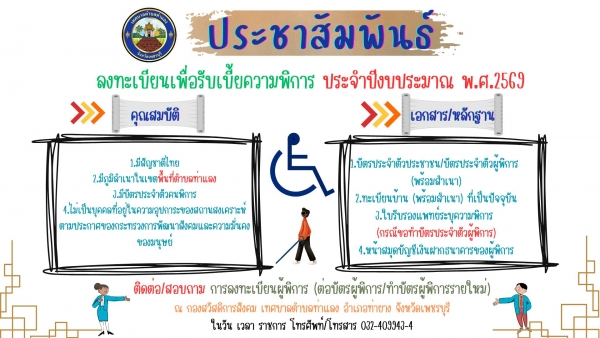 รับลงทะเบียนผู้พิการ / ต่อบัตรผู้พิการ ประจำปีงบประมาณ พ.ศ.2569 ดู 42