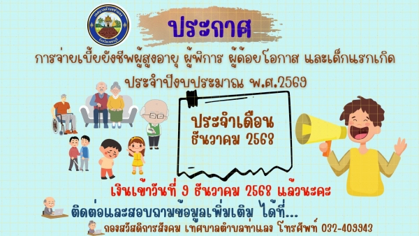 เบี้ยยังชีพผู้สูงอายุ ผู้พิการ ผู้ด้อยโอกาส และเด็กแรกเกิด ประจำเดือนมกราคม 2569 (เงินเข้าวันที่ 9 มกราคม 2569) เรียบร้อยแล้ว ดู 14